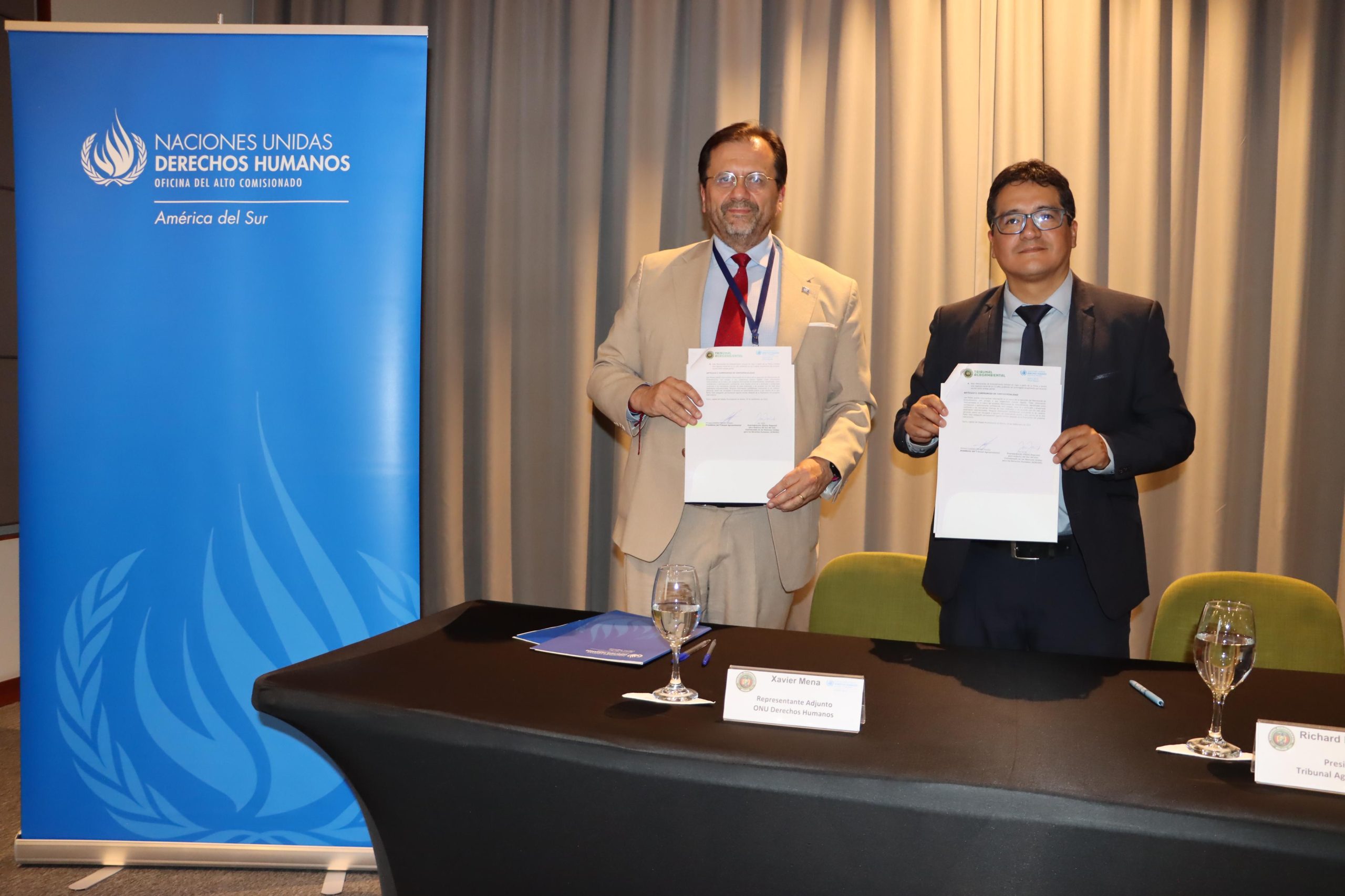 De parte de ONU Derechos Humanos participó en el evento el Representante adjunto para América del Sur, Xavier Mena. En su alocución, Mena destacó la dimensión ambiental, de derechos de los Pueblos Indígenas y la protección de las personas defensoras de derechos humanos como ámbitos prioritarios en este acuerdo de cooperación, reconociendo el rol que desempeña el Tribunal Agroambiental en tales materias.
