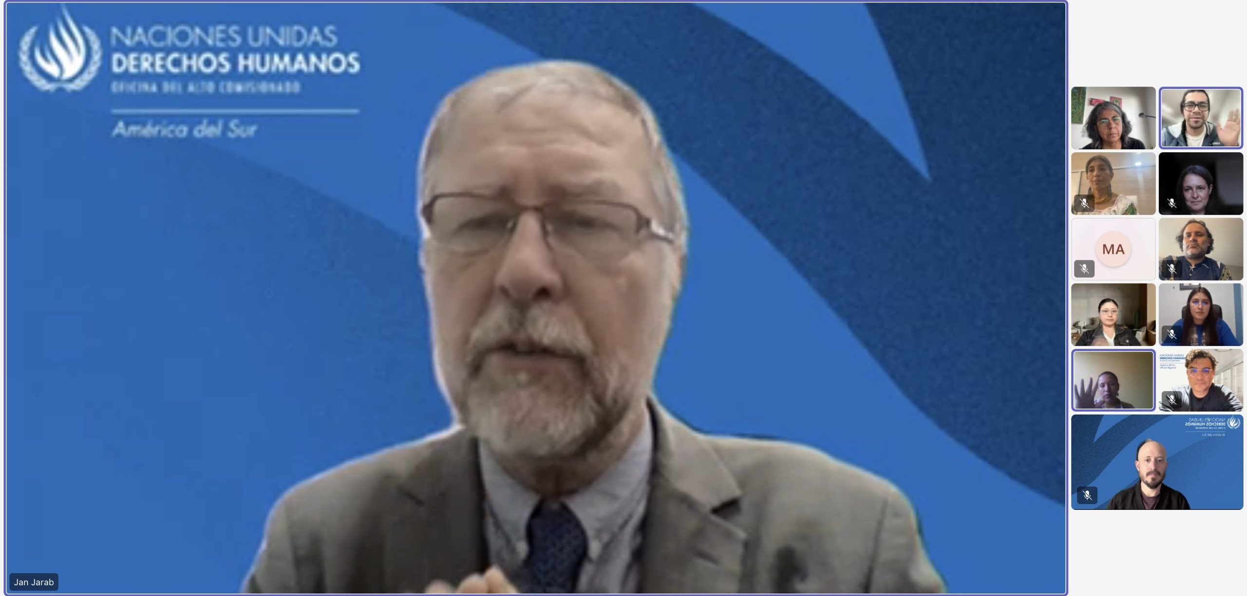 El encuentro, que se desarrolló de manera virtual el 19 de noviembre y contó con la presencia del jefe regional de la Oficina, Jan Jarab, y el colectivo Alianza por los Derechos Humanos, tuvo como objetivo escuchar de manera directa las preocupaciones y testimonios vinculados a la situación de derechos humanos en el contexto de las protestas de septiembre pasado.