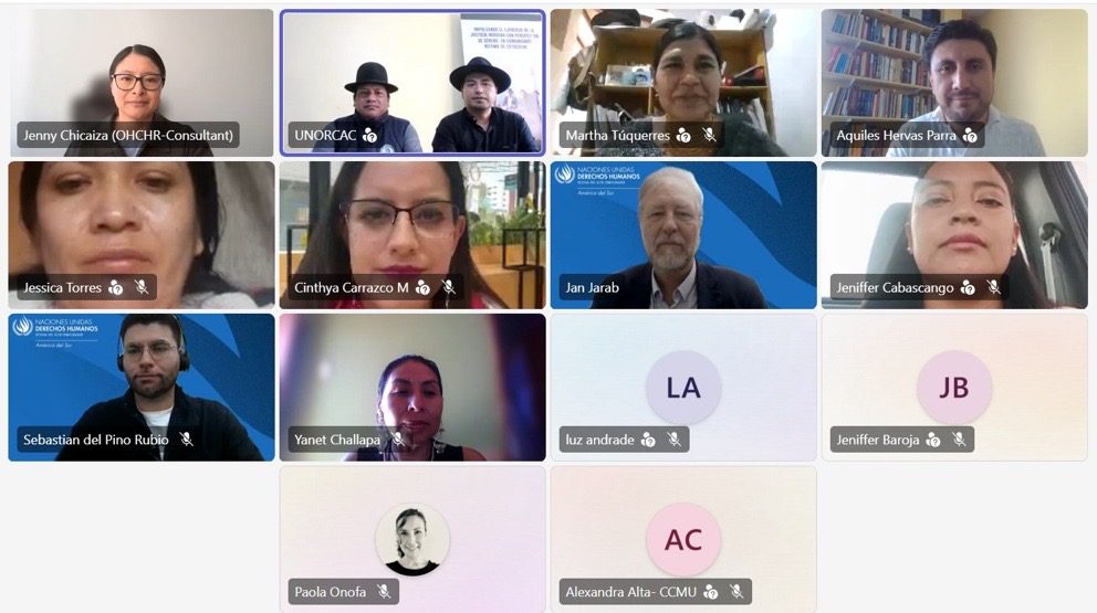 En el encuentro, que se desarrolló de manera virtual el 2 de abril, abogados de la UNORCAC expresaron su preocupación por la criminalización, intimidación y persecución que han sufrido dirigentes y comuneros en el marco de protestas sociales. Asimismo, señalaron las dificultades para ejercer el derecho a ser juzgados por la justicia indígena y no en el sistema ordinario, como ocurre actualmente.